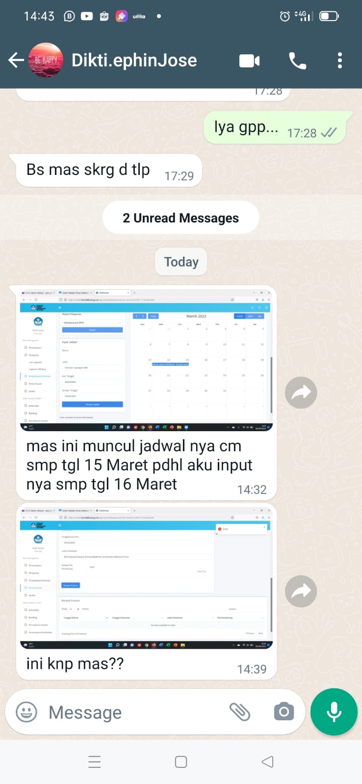 Jadwal cuma sampai tanggal 15 Maret, padahal di input sampai tgl 16 Maret